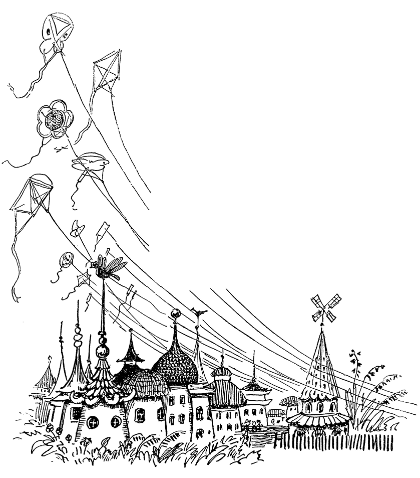 Разноголосое гуденье змеев сливалось с треском мельничных трещоток, в результате чего над городом стоял непрерывный гул.