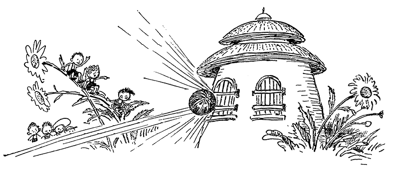Одна малышка во втором этаже углового дома, увидев Незнайку, принялась махать руками и кричать тонким, пискливым голосом: