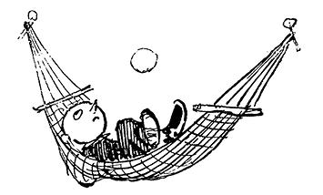 – Вылезая из обыкновенного гамака, вы можете зацепиться ногой за верёвку и, упав, разбить себе нос, – сказал Шурупчик, поднимаясь с пола. – В моём механизированном гамаке эта опасность полностью устранена. Вы спокойно опускаетесь на пол, после чего встаёте. Точно так же, когда вам нужно лечь спать, вы ложитесь на пол, нажимаете кнопку, и гамак сам поднимает вас на необходимую высоту.
