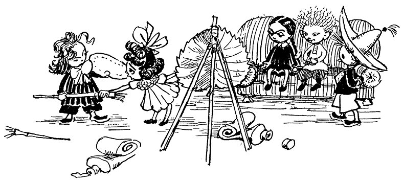 – …Тогда мы стали просить, чтобы нам дали других малышей, – снова подхватила Кисонька и заговорила быстро, чтобы Ласточка не перебила: – Тогда Медуница дала нам Авоську и Торопыжку. Мы повели их по улице, а они убежали от нас и залезли на дерево.