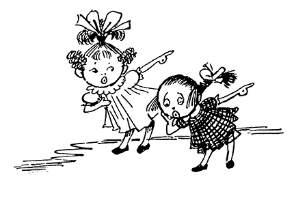 Авоська и Торопыжка глянули вниз и увидели синеглазую малышку, которая, посмеиваясь, глядела на них.