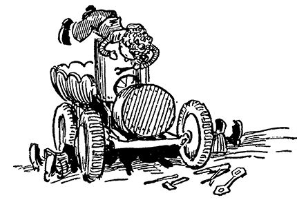 Бублик рассердился и отошёл в сторонку. Но он не уехал. Увидев, что Винтик и Шпунтик начали починять машину, он принялся им помогать. Такой уж компанейский характер у каждого шофёра. Если шофёр увидит, что кто-нибудь починяет машину, он обязательно подойдёт и тоже начнёт что-нибудь ковырять, подвинчивать болт или гайку или просто станет давать советы.