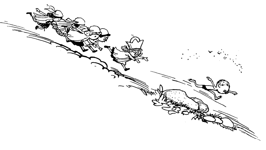 Некоторые, самые догадливые, читатели уже, наверно, догадались, что этот незнакомый малыш был не кто иной, как Знайка. Вместо того чтобы преспокойно вернуться домой, Знайка решил разыскать своих друзей.