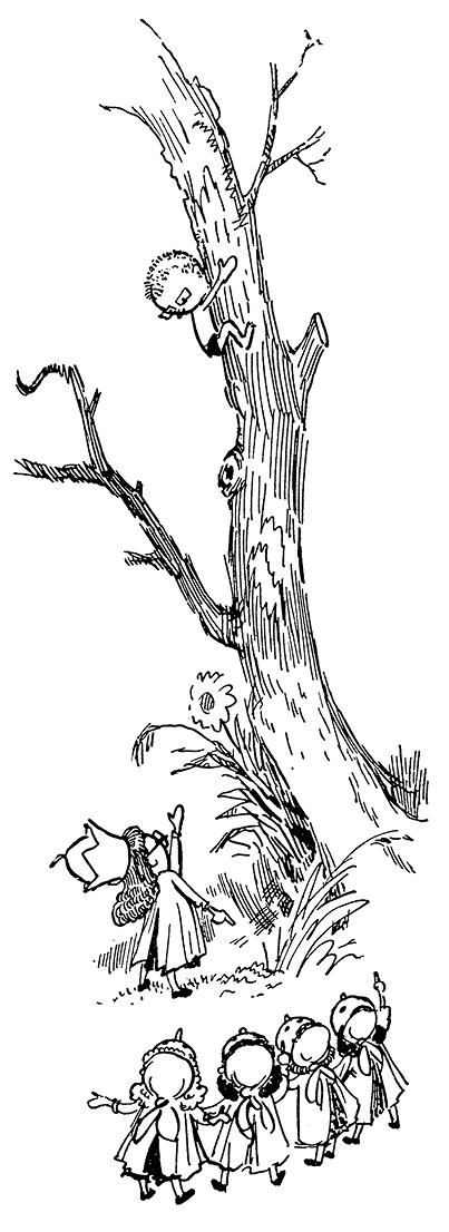 – Хотите на дерево залезть? – предложила ему Кисонька.