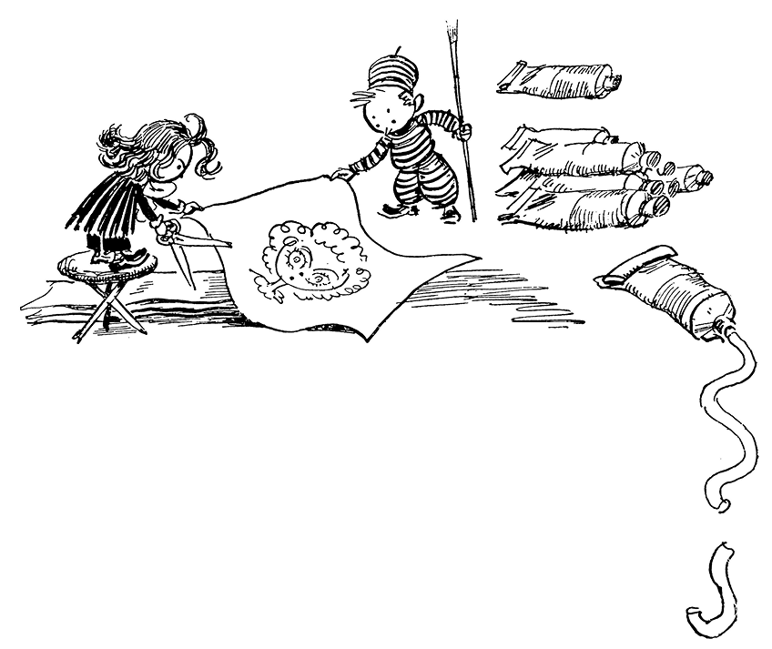 В эти дни один только Тюбик сидел дома и писал портреты. Каждой малышке хотелось иметь портрет, и они совершенно замучили его своими требованиями. Всем обязательно хотелось быть самыми красивыми. И напрасно Тюбик доказывал, что каждый красив по-своему и что даже маленькие глаза могут быть тоже красивыми. Нет! Все малышки требовали, чтобы глаза обязательно были большие, ресницы длинные, брови дугой, рот маленький. В конце концов Тюбик перестал спорить и рисовал так, как от него требовали. Это было значительно удобнее, так как не вызывало никаких лишних пререканий, и к тому же Тюбик заметил, что может провести рационализацию в портретном деле. Поскольку всем требовалось одно и то же, Тюбик решил сделать так называемый трафарет. Взяв кусок плотной бумаги, он прорезал в ней пару больших глаз, длинные, изогнутые дугой брови, прямой, очень изящный носик, маленькие губки, подбородочек с ямочкой, по бокам парочку небольших, аккуратных ушей. Сверху вырезал пышную причёску, снизу – тонкую шейку и две ручки с длинными пальчиками. Изготовив такой трафарет, он приступил к заготовке шаблонов.