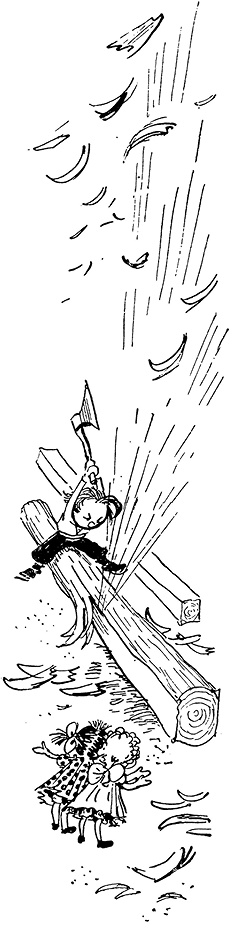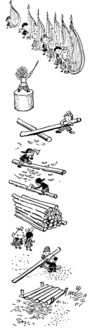 Малышки принесли ещё две пилы, и Ворчун с Пилюлькиным тоже включились в работу. Ворчун говорил, что лазить по деревьям гораздо приятнее, чем сидеть взаперти у Медуницы.