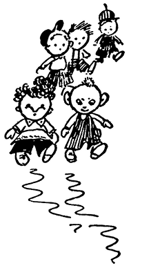 А у Незнайки, конечно, не хватало терпения сидеть в зарослях одуванчиков. Время от времени он вылезал, и вот тут-то ему приходилось туго. Малышки вовсе не обращали на него никакого внимания, будто его и не существовало, но зато малыши просто не давали проходу.