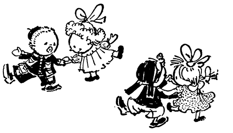 – Бедненький! Вы плакали? Вас задразнили! Малыши такие взбалмошные, но мы не дадим вас в обиду. Мы не позволим больше никому вас дразнить. – Она отошла в сторону и зашептала малышкам: – С ним надо обращаться поласковее. Он провинился и за это наказан, но теперь он раскаялся и будет вести себя хорошо.