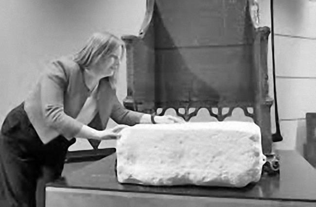 Рис. 32. Камень Судьбы переносят на полотнище. Англия. Взято из Интернета