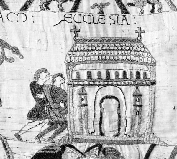 Рис. 48. Подданные Эдуарда входят в христианскую церковь. Ковер из Байе. Взято из [1028:0], лист 3