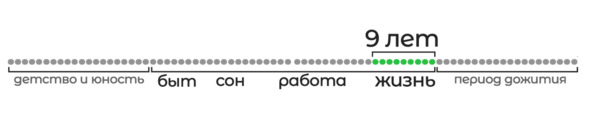 Если мы от этой средней продолжительности жизни отминусуем эти 30—40 лет, то у нас останется приблизительно 30—40 лет активной жизни, в течение которой мы и можем что-то продуктивно делать.