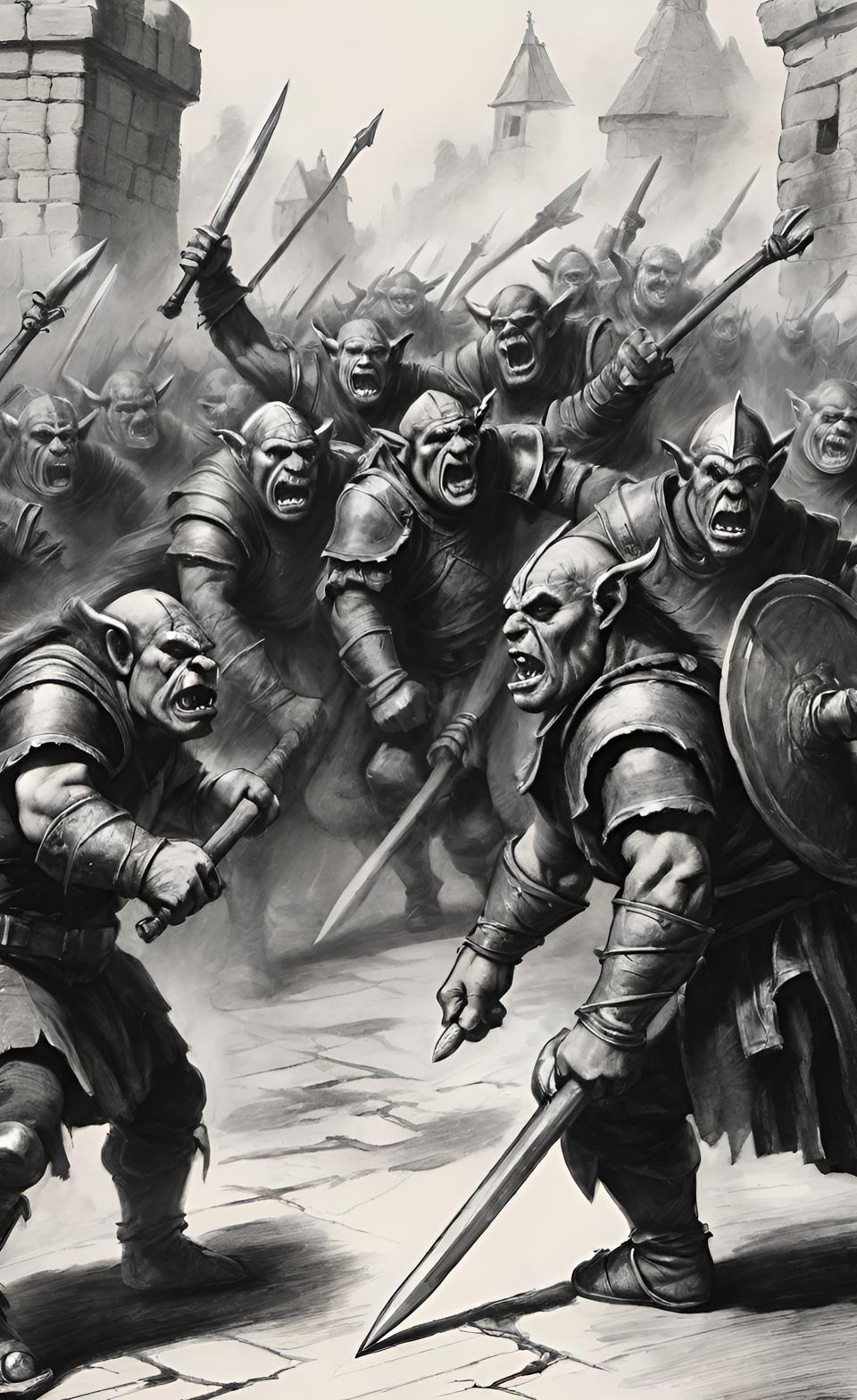 Постепенно зеленокожие захватили стену, люди отступили под прикрытием арбалетчиков, бой перешёл на улицы города. Узкие переулки сейчас играли людям на руку, поскольку почти каждый из них знал их, как свои пять пальцев, а орочьи лучники на стене не могли стрелять по своим. Но враг всё же прибывал слишком быстро, контратаки не случилось.