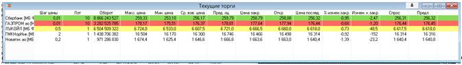 Рис. 2.18. Сформированная «Таблица текущих торгов».