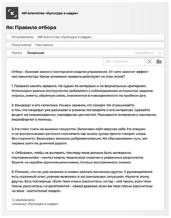 При наставничестве другой уровень общения. Тут мы выбираем не того, кто будет бегать за деньги по нашим делам, а единомышленника.