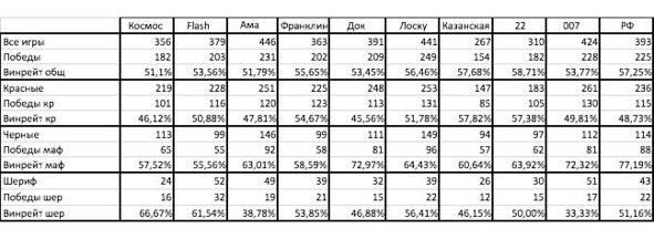 Таблица 2. Статистика Гроссмейстеров игры «Мафия».13