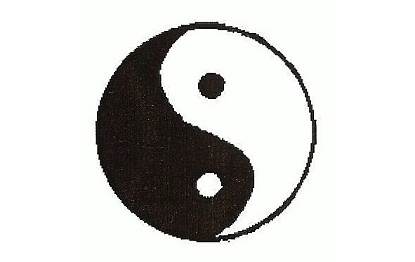Символически – это представлено кругом, означающим Абсолют бесконечности во времени и пространстве. Слева – черная сторона обелиска перевернутой запятой, представляет втягивание воздуха в материю – это ЙИН. Его атрибуты: суть, мрак, холод, центростремительная сила. Это сторона Луны. Справа, белая поверхность такой же величины и формы, только в обратном положении – это ЙАНГ, сторона света, тепла, Солнца: она означает – центростремительную, положительную силу. В центрах их ЙИНА, в самой широкой его части, находится маленькая белая точка, а в центре ЙАНГА – черная, что означает, что во Вселенной не существует ничего абсолютно положительного или абсолютно отрицательного.
