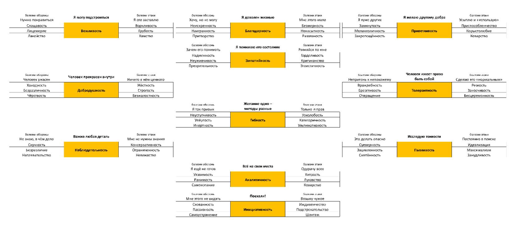 Добродушность позволяет увидеть истинного человека, с которым Вы будете вести переговоры о необходимом для Вас, понять его натуру, увидеть его Ядро. Это открывает много дверей – ведь внутри он видит себя капитаном, а живёт часто совсем по-другому. Обращаясь к его Ядру, Вы редкий, кто «гладит его не против шерсти». А Толерантность добавляет масла в разгорающийся приятный огонь – позволяя Вам проникнуться его взглядами на жизнь. Это два механизма создают идеальную среду для синхронизации Вас с переговорщиком.