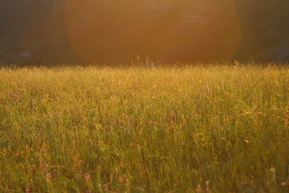 Мои глаза познакомились с колосистым полем, почему-то оно было золотисто-пепельным, ярким и таким осязаемым, как я люблю. Из-за круглого поля выглядывало тёмно-синее небо, оно несло своё величие спокойно и гордо. Эта густая и лёгкая синева, словно вдохновенный взмах кисти, переставала сердиться на середине неба и перерастала в организованные припечённые снизу и обласканные солнцем сверху облака. Они лёгкой походкой шествовали по заспанному сутра небосклону, мягкому и всепрощающему. В той части небесного царства, где полноправно хозяйничало солнце, шутливо и легкомысленно кружились лёгкие белые облака-перья, опавшие с какой-то огромной белоснежной космической птицы. И весь воздух был плотным, нёс и кружил какие-то частицы лета, травы, неба, одуванчиков, деревьев, золотистого пуха и дорожной горькой пыли.