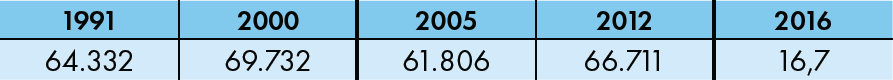 Damit ist der prozentuale Anteil der jungen Menschen in Heimerziehung im Verhältnis zur Gesamtbevölkerung im Alter von 0 bis 20 Jahren von 0,37 % in 1991 auf 0,59 % in 2016 angestiegen.