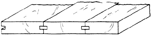 To make this joint, first the boards are all laid down flat, side by side, and arranged in the proper order. Three considerations determine what this order is to be: (1), if the grain is of prime importance, as in quartered oak, then the boards are arranged so as to give the best appearance of the grain. (2), if possible, the boards should be so arranged that the warping of each board shall counteract that of the adjacent ones. For this purpose the boards are so laid that the annual rings of one shall alternate in direction with the annual rings of the next, Fig. 280, a, p. 186. (3), if possible, the boards should be so arranged that after being glued together they can all be planed smooth in the same direction. When the above requirements have been met so far as possible, this order should be marked on adjoining edges for later identification. The edges of the boards to be joined should be finished with a jointer.