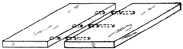 No. 75. A doweled joint is made by jointing the two edges carefully, boring holes opposite each other and inserting dowel pins when the two edges are glued together. It is used in table tops, etc.