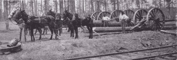 Fig. 24. Hauling Logs by Mules. Oscilla, Georgia.
