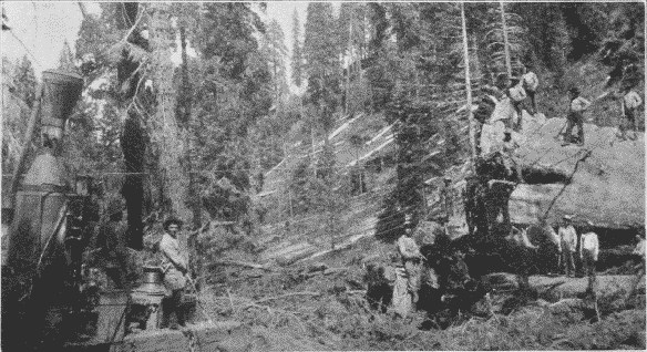 Fig. 26. Hauling Big Logs by Donkey Engine.