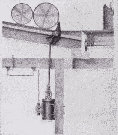 Fig. 39. Log-Stop and Loader. By letting steam into the cylinder, the projecting arm revolves, rolling one log over onto the carriage and holding the next one till wanted.