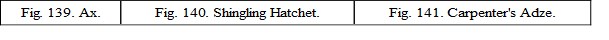 3. CHOPPING TOOLSThe primitive celt, which was hardly more than a wedge, has been differentiated into three modern hand tools, the chisel, see above, p. 53, the ax, Fig. 139, and the adze, Fig. 141.