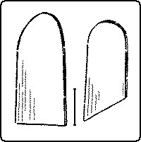Scrapers are thin, flat pieces of steel. They may be rectangular, or some of the edges may be curved. For scraping hollow surfaces curved scrapers of various shapes are necessary. Convenient shapes are shown in Fig. 150. The cutting power of scrapers depends upon the delicate burr or feather along their edges. When properly sharpened they take off not dust but fine shavings. Scrapers are particularly useful in smoothing cross-grained pieces of wood, and in cleaning off glue, old varnish, etc.