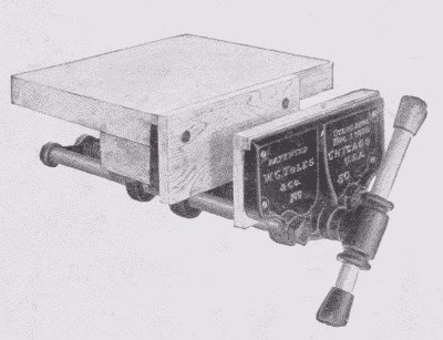 Vises for holding wood are of three general styles, (1) those with an upright wooden jaw, Fig. 167, which holds wide pieces of work well. They are now made with an automatic adjusting device by which the jaw and the face of the bench are kept parallel; (2) wooden vises with a horizontal jaw, guided by parallel runners, Fig. 166, and, (3) metal rapid-acting vises, Fig. 168. The latter are the most durable and in most respects more convenient. Special vises are also made for wood-carvers, for saw-filing, etc.