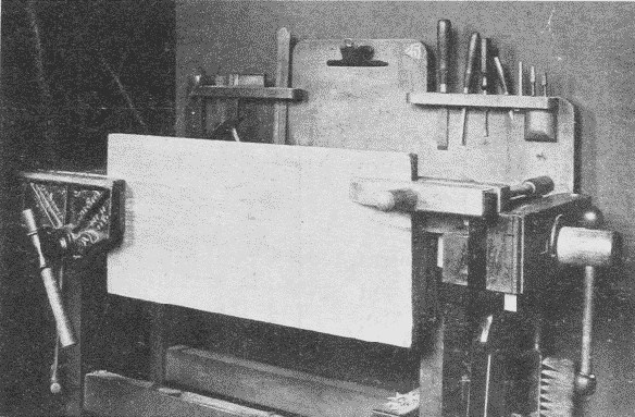 Fig. 167. Woodworking Bench used at Pratt Institute, Showing Self-Adjusting Upright Vise.