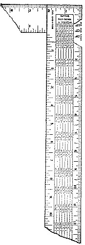 The rafter-table is found on the back of the body of the square, Fig. 197. Auxiliary to it are the twelfth inch graduations, on the outside edges, which may represent either feet or inches.