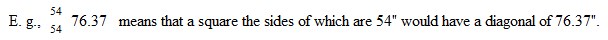 The brace-measure is to be found along the center of the back of the tongue, Fig. 193. It is used thus: the two equal numbers set one above the other represent the sides of a square, and the single number to their right, represents in inches and decimals, the diagonal of that square.