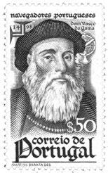 Марки из набора «Мореплаватели» с портретами Бартоломеу Диаша и Васко да Гамы.