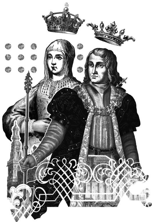 В пустой зале с флагами и гербами монархов, на помосте поставили два одинаковых высоких трона, в четырех шагах от них положили подколенную подушечку для просителей. В положенный час члены совета выстроились полукругом слева и справа от кресел, тихо переговаривались в ожидании правителей. Супружеская чета явилась с опозданием. Тридцатидвухлетний Фердинанда и тридцатичетырехлетняя Изабелла имели темные волосы, овальной формы лица с чуть одутловатыми щеками и крупными прямыми носами. Синие лучистые глаза и мягкая улыбка королевы производили на подданных приятное впечатление, карие глаза короля холодно пронзали просителей. Губы и подбородок Изабеллы были тоньше, чем у Фердинанда. У короля выделялись мощная шея и широкий лоб. Супруги одевались в парные просторные платья с широкими рукавами, сшитые из одного куска венецианской ткани с орнаментом из цветов. На плечах Фердинанда висела массивная золотая цепь, опускавшаяся до живота; грудь Изабеллы украшал медальон с драгоценными камнями. Голову короля прикрывал бархатный берет, у королевы на макушке висела повязка. Супруги выглядели не лучше подданных, но держались с большим достоинством.