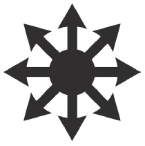 The Chaos Wheel, or Chaos Star, is a wheel constructed from eight arrow-headed spokes. Representing the notion of infinite possibilities, the symbol is a recent addition to a veritable galaxy of meaningful shapes. Designed by science fiction writer Michael Moorcock, it has been adopted as an emblem by exponents of Chaos Magic, the contemporary branch of magic inspired by the works of Austin Osman Spare.
