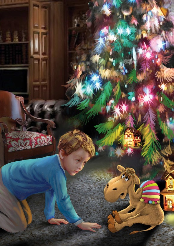 On the very day before Christmas, a camel showed up at the house. He was sitting on the floor under the Christmas tree and attentively scrutinizing the room with his tiny eyes under his frizzy brows. He sported a small knit cap, with clumps of ruddy fur sticking out from underneath.