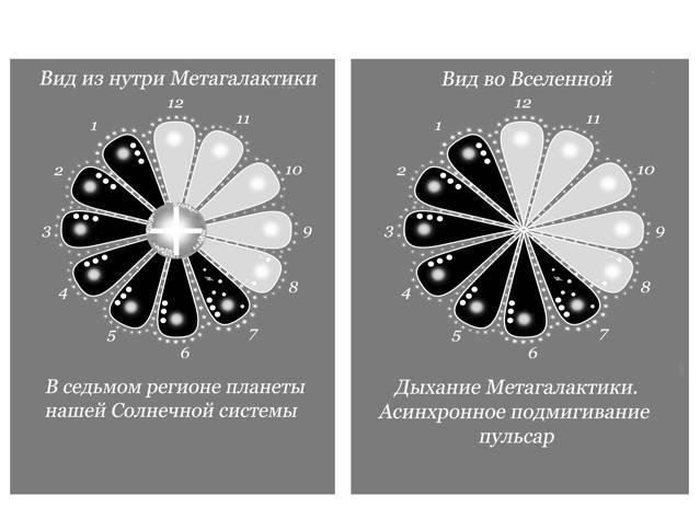 Вообще полусферы и Головная часть, поражают грандиозными размерами. Вид Метагалактики сверху и снизу. Гирлянды пульсар входят в ось. Все 24 цепи гирлянд устремлены в 0 точку.