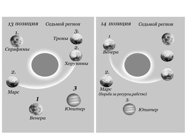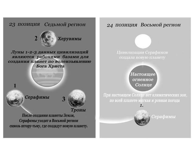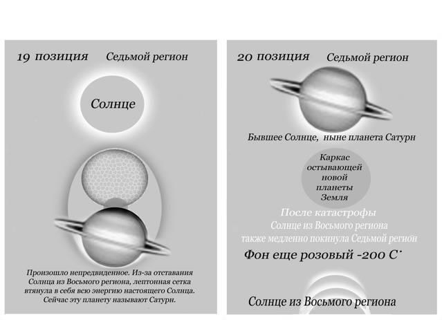 Позиция 20. Солнце ушло в Восьмой регион. Наше Солнце погасло. Наша планета тогда была под большим вопросом. Луны могли по волеизъявлению Отца Бога перейти в Восьмой регион и там прогрессировать, создав новую планету.