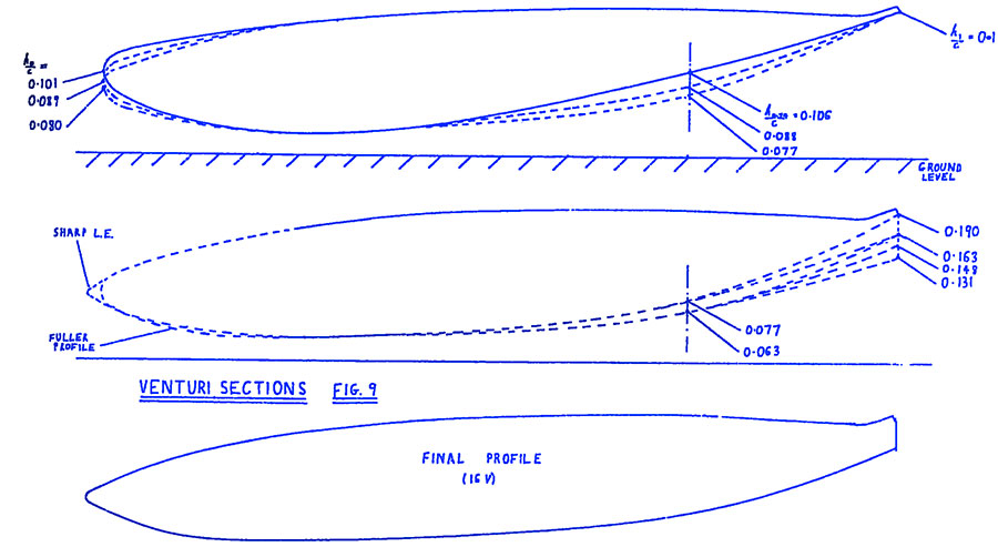 Рис. 5. Технический чертеж из моего университетского проекта, иллюстрирующий 2D-разделы нижней формы крыла (venturi)