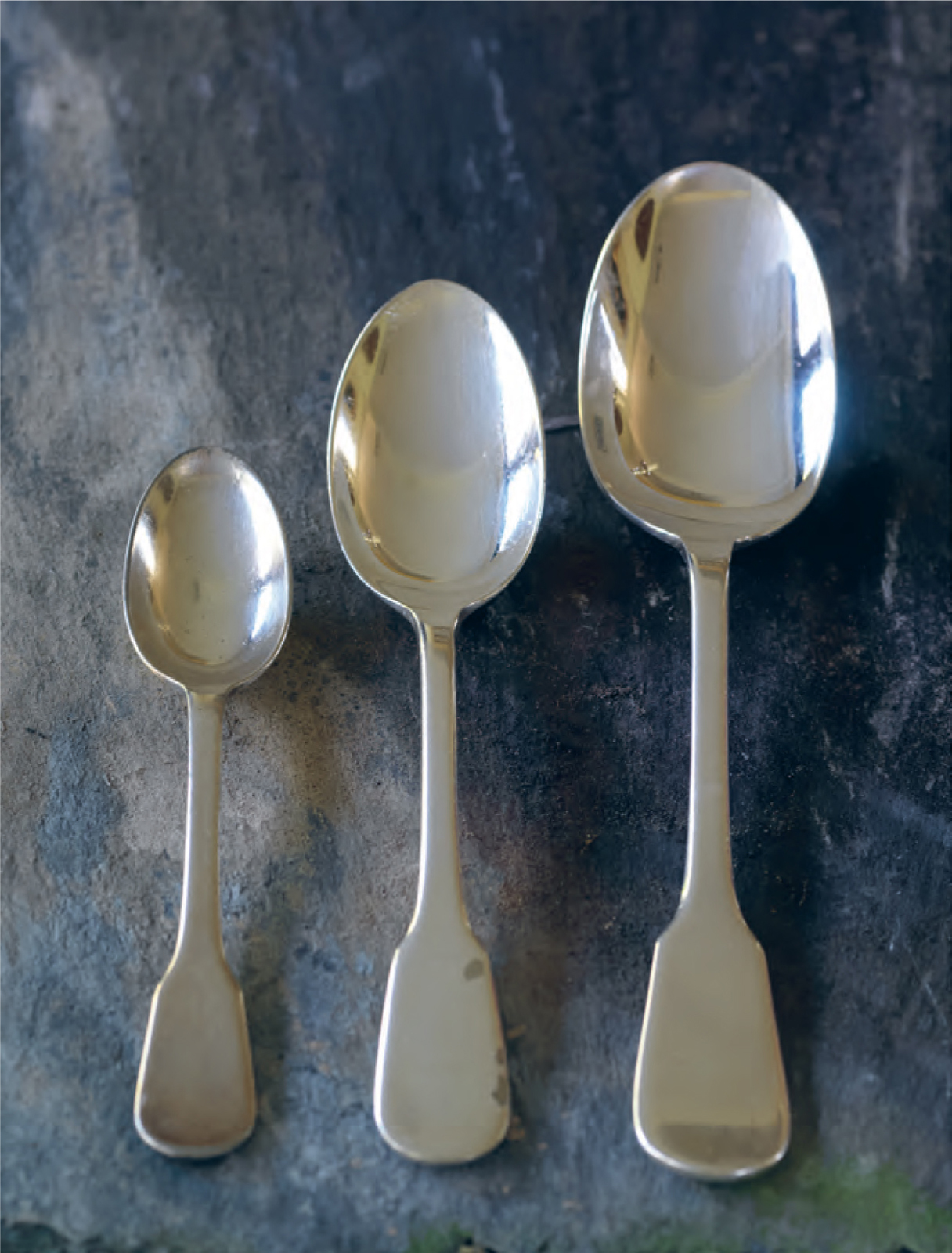 Measuring spoons: teaspoon, dessertspoon and tablespoon