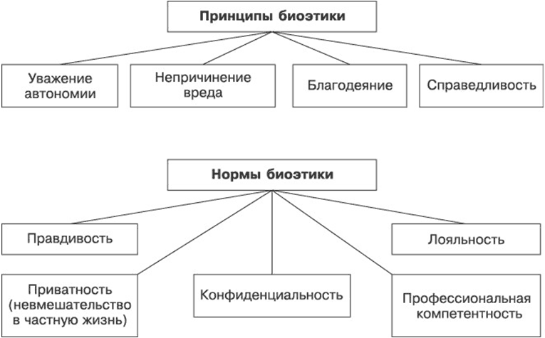 Одна из важнейших причин выделения биоэтики в самостоятельную дисциплину и формирования биоэтической проблематики – это новое понимание взаимоотношений между врачом и пациентом. В 50–60-х годах ХХ века входят в употребление термин informed consent и соответствующая ему практика признания обязанности врача сообщать пациенту полную и достоверную медицинскую информацию. Речь идет о гораздо более широкой, чем ранее, трактовке прав пациента. Это право на уважение автономии человеческой личности, право на получение информации о диагнозе и прогнозе состояния, право участвовать в принятии решений о выборе лечения вплоть до отказа от лечения вообще. Многие из этих прав носят не гражданский, а этический характер.