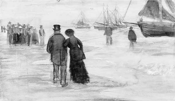 Винсент Ван Гог. Пляж с ходячими людьми и лодками. 1882. Частная коллекция