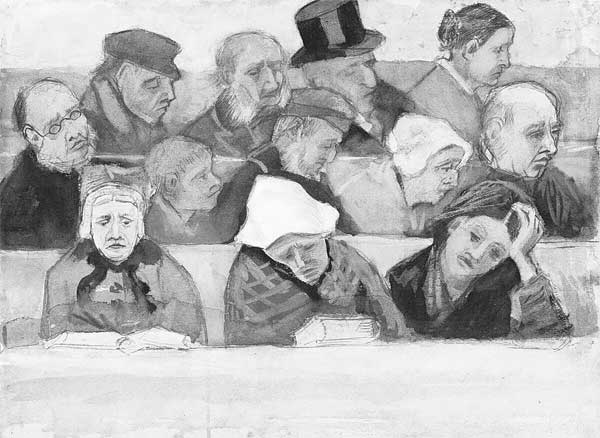 Винсент Ван Гог. Церковная скамья с верующими. 1882. Музей Крёллер-Мюллера, Оттерло