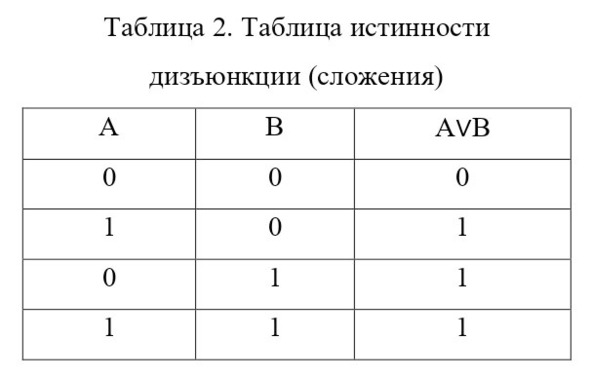 Каждый из операций при этом обладал своей таблицей истинности. Для конъюнкции это (Табл. 1), для дизъюнкции – (Табл. 2) и логического отрицания – (Табл. 3).