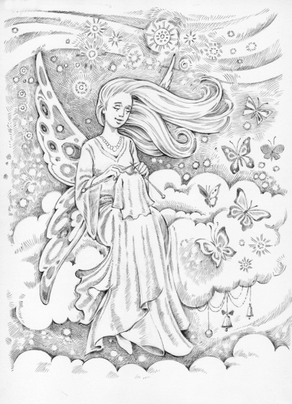 Она изо дня в день старательно и умело взбивала пушистое облачко, а затем пряла из него тончайшую нить. Никто на свете не мог так искусно прясть, как фея Надежда. Но только вот тайну своего мастерства она никому не выдавала. По крайней мере, до сего времени не нашлось ни одного мастера, кто мог бы сотворить такую чудесную и тончайшую нить.