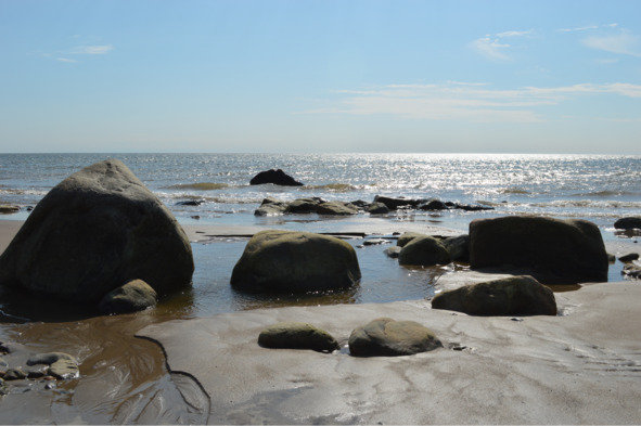 Местами, где была старая дорога, идти было легко, но вот пересекать болото оказалось делом непростым. Подумав, я предложил дойти до северной оконечности острова и возвращаться домой уже берегом, там идти по плотному мокрому песку можно, как по асфальту. Обратный путь тем же маршрутом занял бы намного больше времени. Однако я не учел, что северный берег был наиболее обрывист, и спуститься нам будет очень нелегко, местами его высота достигает 25—30 метров.