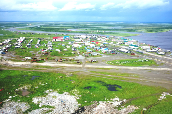 Но Новый Уренгой – это только промежуточная точка. Еще шесть часов на «Газеле» и вот я в поселке Тазовский. Отсюда еще полтора часа пути до конечной моей точки на вертолете. Утром винтокрылый аппарат доставил меня в поселок Антипаюта. Подлетая, в иллюминатор я увидел, что представляет, это место.