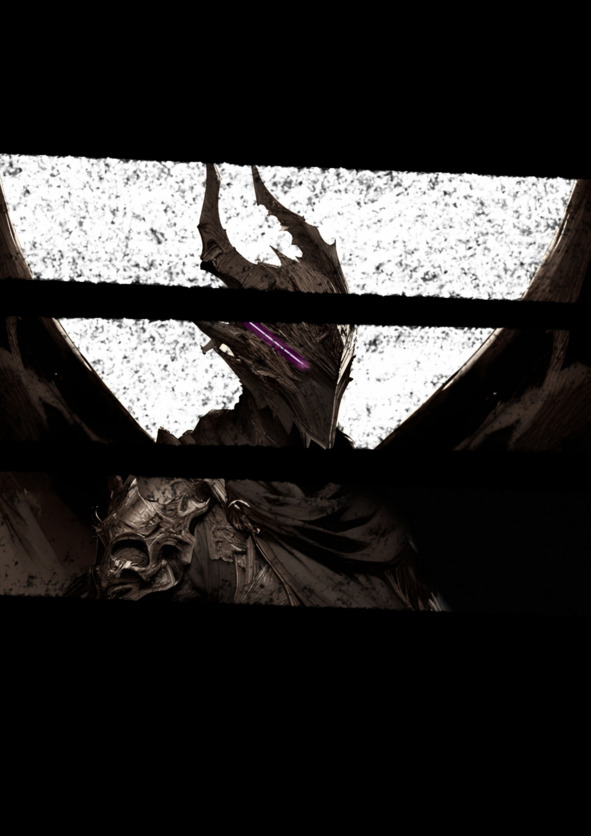Она не успела окончить, осмотр до того, как послышался шум огромных крыльев. Взглянув в небо, она увидела олицетворение демона, что вселяло ужас и трепет. Как только он приземлился, Аристина смогла разглядеть в нём очертание Альберика которого уже встречала ранее. Однако в их последнюю встречу у него не было золотого рога, и уж тем более крыльев.